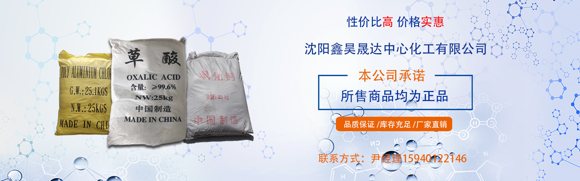 沈陽鑫昊晟達中心化工有限公司成立于2020年,注冊資金100萬元,公司位于沈陽市和平區安圖街8號,是經國家相關部門批準注冊的化工生產銷售企業。 主營各類基礎化工原料,化學試劑,顏料染料水處理藥劑,洗滌系列乳化劑,粘稠劑,活性劑干燥劑,膠黏劑,融雪劑等。 我公司不但經營水玻璃(硅酸鈉水溶液) ,AES,K12,元明粉,十二烷基磺酸鈉,OP-10,TX-10,6501,6502, 羧甲基纖維素鈉CMC,葡萄糖酸鈉,木質素磺酸鈣等洗滌原料和建筑外加劑的系列原材料,還有純堿,三氯化鐵,聚合氯化鋁PAC (各含量),聚丙烯酰胺PAM,聚合硫酸鐵等污水處理的系列原料,硫酸銅,硫酸鎳,氧化鋅等電鍍系列原···…